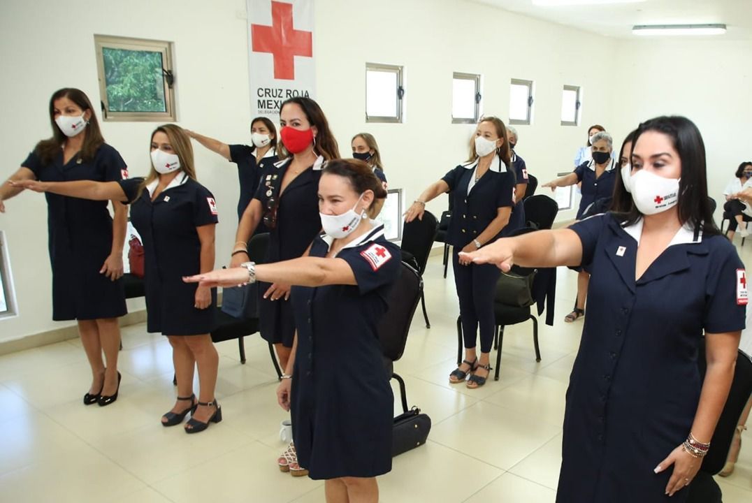 Toma de compromiso de damas voluntarias de la Cruz Roja Playa del Carmen.