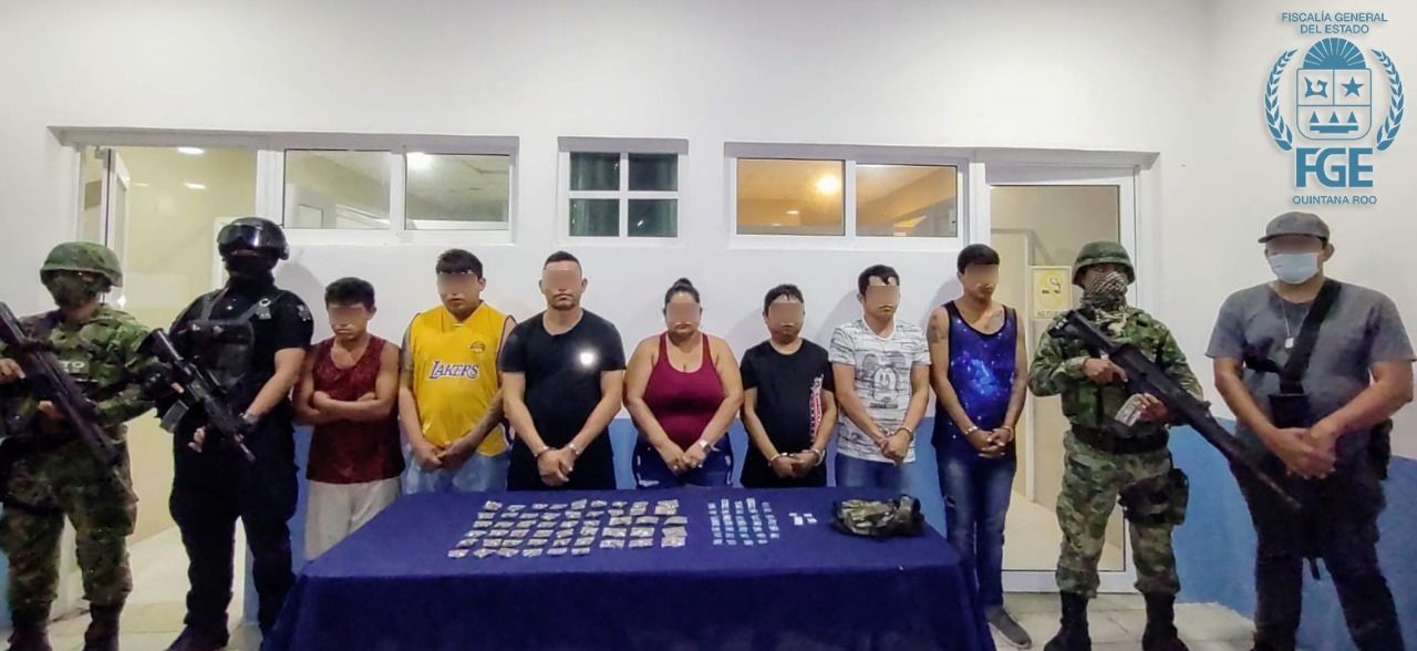 Como resultado de trabajos de campo y gabinete y través de distintas acciones en el Municipio de Tulum, la Fiscalía General del Estado de Quintana Roo apoyados por el Grupo de Coordinación para la Construcción de la Paz y Seguridad conformado por Policía Quintana Roo, SEDENA, MARINA, Guardia Nacional, cumplimentaron órdenes de cateos en tres inmuebles y aseguraron a 15 personas, diversas cantidades y tipos de estupefacientes y 123 casquillos 9 milímetros.