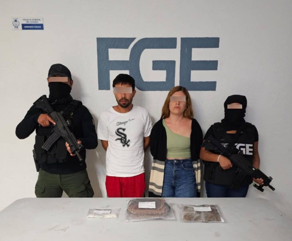 En la primera diligencia, llevada a cabo en un domicilio de la colonia Cristal, los agentes participantes detuvieron a Alexis Gabriel “N” y Paula Jazmín “N”, a quienes les aseguraron bolsitas con hierba verde y seca con las características de la marihuana, fragmentos cristalinos color blanco, similares a la droga conocida como metanfetamina y fragmentos granulados cristalinos.