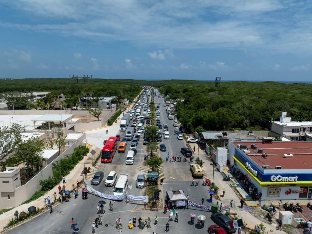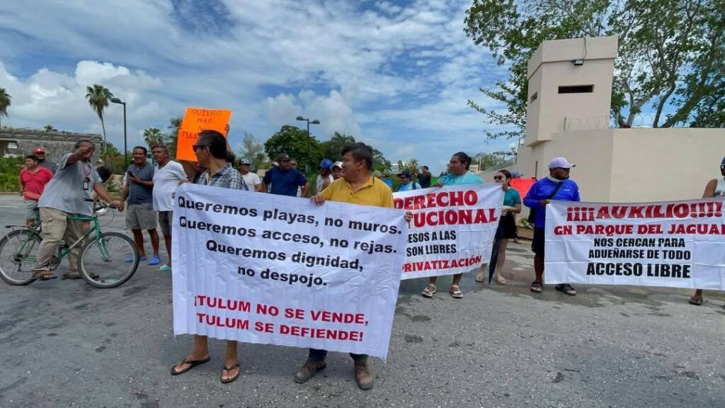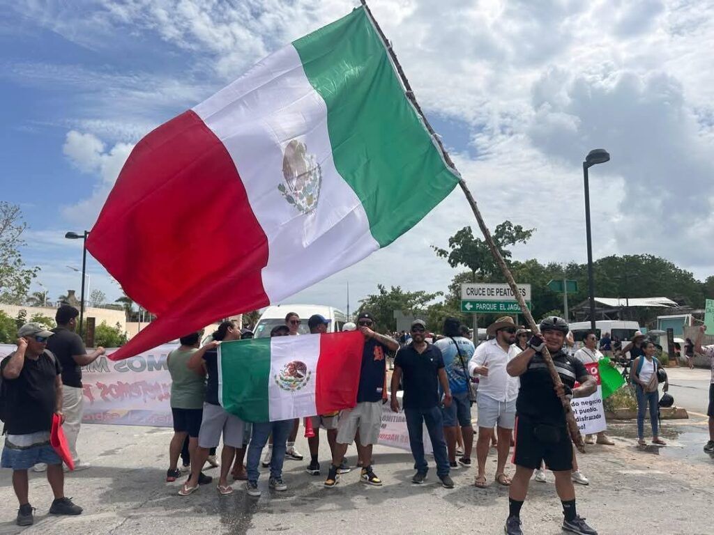 La protesta, que se prolongó hasta la noche, fue acompañada de consignas y pancartas en las que se exigía respeto para la población y la eliminación inmediata de cualquier tipo de cuota de acceso a playas, cenotes y zonas arqueológicas incluidas en el polígono del Parque del Jaguar.