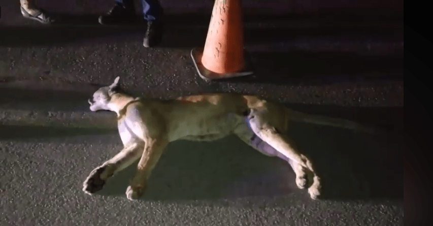 Un puma, conocido también como león de montaña o pantera, fue atropellado brutalmente y murió casi en el acto