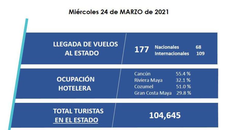Mediante el aterrizaje de 177 vuelos a Quintana Roo, 109 de llegadas internacionales y 68 de diferentes estados de la República mexicana; el estado se coloca con 104 mil 645 turistas en total.
