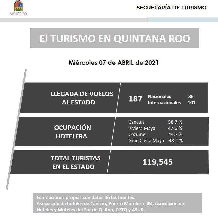 Para cerrar con el reporte semanal de estos días, se dio a conocer a través de los datos que obtiene la Sedetur, el número de turistas que visitaron Quintana Roo así como la entrada de vuelos al estado y las cifras en temas de ocupación hotelera.