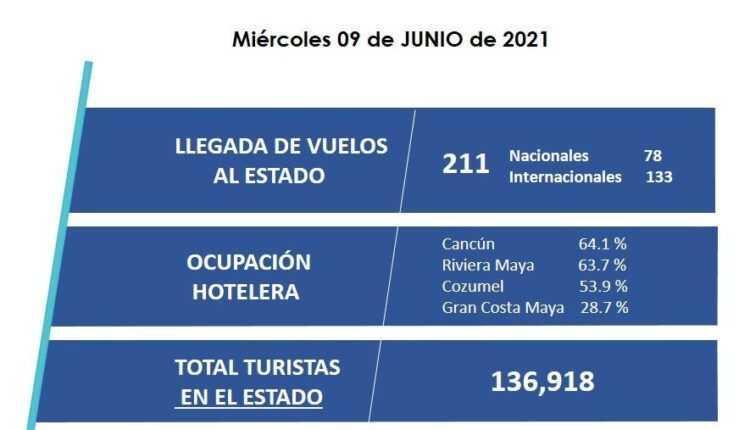 En este sentido, Cancún como destino turístico se mantiene como primero en temas de ocupación hotelera con 64.1 por ciento y en esta ocasión seguido de Riviera Maya con 63. 7 por ciento, Cozumel con 53. 9 por ciento y Gran Costa Maya con 28. 7 por ciento; además de presentar un número total de 136 mil 918 turistas.