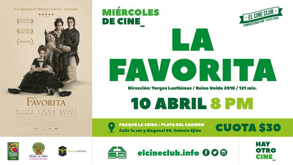 20:00 horas – El Cineclub presenta la película “La Favorita”, (Dir. Yorgos Lanthinos. Reino Unido 2018). Parque La Ceiba. Cuota $30 pesos.